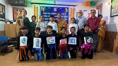 . The students mesmerized everyone with their dhol garba accompanied by nagada. The presentation of "Vijayi Bhava" filled everyone with enthusiasm. A play was presented to raise awareness about the negative impact of social media on students and parents. Several children read verses from Sushma Malhotra's book "Thodi Si Dhoop Mein."