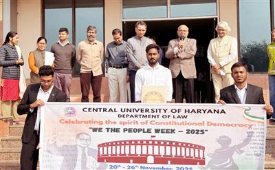 Mahendergarh,20.11.25-The Department of Law at the Central University of Haryana today inaugurated "We the People Week-2025" (November 20–26, 2025) with a Preamble Parade.