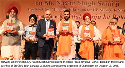 Chief Minister releases the book 'Tilak Janju Ka Rakha' based on the life and sacrifice of Guru Tegh Bahadur Ji