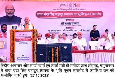 Chandigarh, October 27 – Union Minister for Power, Housing and Urban Affairs Sh. Manohar Lal said that the memorial at Lohgarh, Yamunanagar, will not only immortalize the indomitable courage and sacrifice of Baba Banda Singh Bahadur Ji but will also serve as a centre to showcase the glorious heritage of the Sikh community for future generations and as a hub of Indian culture. He said this memorial will become a place of faith and inspiration not only for the people of Haryana but also for devotees from across the country and the world.