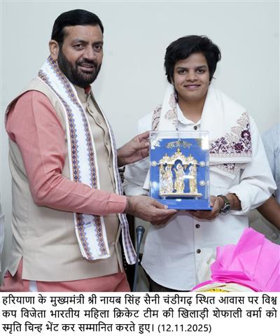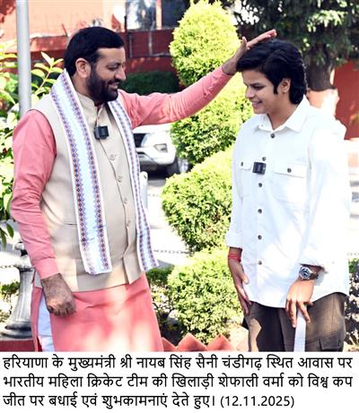 Congratulating Shafali Verma and her family, Sh. Nayab Singh Saini said that Haryana is a hub of sports, and the daughters of the state have brought glory to the nation at the international level. He added that the daughter of Haryana played a pivotal role in the World Cup final, helping India become World Champions.