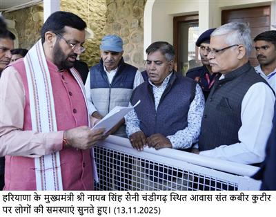 Chandigarh, November 13 - Haryana Chief Minister, Mr. Nayab Singh Saini has ordered departmental action against 19 Executive Engineers of various departments for closing some complaints on the ‘Mhari Sadak App’ without ensuring their complete resolution and for mishandling public grievances. These include two officers from the PWD, six from the HSAMB, two from the HSIIDC, one from the Zila Parishad, five from ULBs, and three from the HSVP. The Chief Minister also directed that strict action be taken against contractors who fail to address complaints within the stipulated time frame.