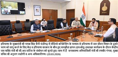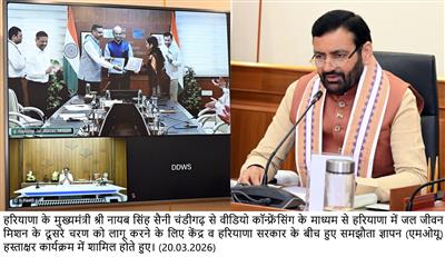 Chandigarh, March 20— In a significant step towards strengthening rural water infrastructure, the Government of India and the Haryana Government on Friday signed a Memorandum of Understanding (MoU) for the implementation of Jal Jeevan Mission 2.0. The MoU was signed virtually in the presence of Union Jal Shakti Minister, Sh. C.R. Patil and Haryana Chief Minister, Sh. Nayab Singh Saini.