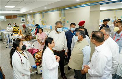 He first visited the Government Medical College and Hospital Sector-32 (GMCH-32) and inspected the Emergency and Trauma Block. He went to triage, surgical, medicine and paediatrics emergency wards and interacted with patients, most of whom expressed satisfaction with the treatment. He also checked the blood collection centre, ultrasound room, and was briefed about the emergency operation theatres.