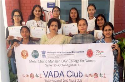 Chandigarh, 2 April: The Victory Against Drug Abuse (VADA) Club of Mehr Chand Mahajan DAV College for Women organised a felicitation ceremony to honour its dedicated VADA volunteers for their contribution to the cause of Drug Abuse awareness during the session 2025-26. The event celebrated the unwavering commitment and impactful efforts of the young changemakers who have consistently raised awareness against drug abuse within the college and the wider community.