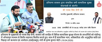 Chandigarh, April 10- In a major step towards strengthening social welfare delivery and ensuring last-mile financial inclusion, the Chief Minister of Haryana on Friday disbursed a total amount of Rs. 1,665.25 crore directly into the bank accounts of beneficiaries under 18 different government schemes.