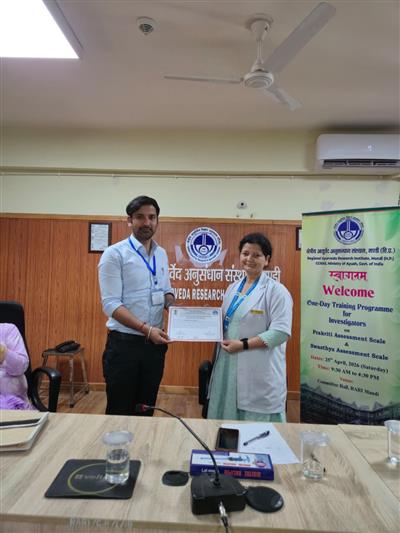 मंडी, 25 अप्रैल। क्षेत्रीय आयुर्वेद अनुसंधान संस्थान (आरएआरआई), पंडोह, मंडी द्वारा आज संस्थान परिसर में एक दिवसीय प्रकृति प्रशिक्षण कार्यक्रम का आयोजन किया गया। संस्थान की प्रभारी डॉ. विनीता कुमारी नेगी ने बताया कि यह प्रशिक्षण कार्यक्रम केंद्रीय आयुर्वेदीय विज्ञान अनुसंधान परिषद द्वारा नियोजित प्रकृति आधारित अनुसंधान अध्ययनों के प्रभावी क्रियान्वयन की दिशा में आयोजित किया गया।