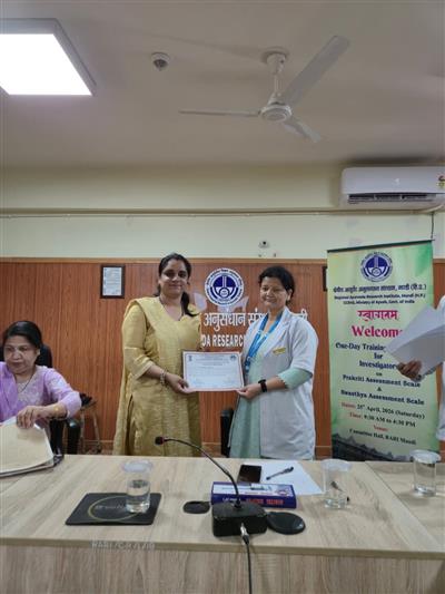इस अवसर पर अनुसंधान अधिकारी (आयुर्वेद) डॉ. विकास नरियाल ने प्रतिभागियों को अध्ययन प्रोटोकॉल के विभिन्न पहलुओं की जानकारी दी। इसके उपरांत संस्थान के मास्टर प्रशिक्षकों एवं अनुसंधान अधिकारियों द्वारा सीसीआरएएस द्वारा विकसित प्रकृति मूल्यांकन पैमाने तथा स्वास्थ्य मूल्यांकन पैमाने पर विस्तृत प्रशिक्षण प्रदान किया गया।