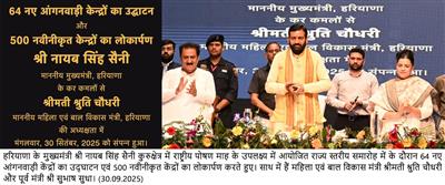He said that Poshan Maah is a multi-departmental movement involving education, agriculture, panchayati raj, women & child development, and rural development departments. Through the Integrated Child Development Services (ICDS), Haryana monitors the health, nutrition, psychological and social development of children up to six years. To strengthen early childhood education, 4,000 play-way schools have been opened for children aged 3 to 6 years. The 2025–26 budget provides for another 2,000 play-way schools to be run within Anganwadi centres.
