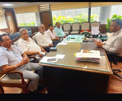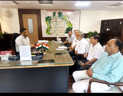 चण्डीगढ़, 30.09.25- : चण्डीगढ़ व्यापार मंडल (सीबीएम) के वरिष्ठ पदाधिकारियों का एक प्रतिनिधिमंडल अध्यक्ष संजीव चड्ढा के नेतृत्व में आज नगर निगम अधिकारियों से मिला जिसमें नगर निगम आयुक्त भी शामिल रहे। प्रतिनिधिमंडल ने शहर के बाजारों से संबंधित गंभीर मुद्दों पर चर्चा की और विशेषकर आगामी त्यौहारों के मौसम को ध्यान में रखते हुए पार्किंग सुविधाओं के उन्नयन और बाजारों के सौंदर्यीकरण हेतु तत्काल कदम उठाने की आवश्यकता पर बल दिया।