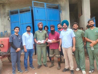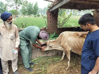 First animal welfare camp was organized in affected villages of Ramdas, district Amritsar in association with local veterinarian & Kar Sewa fraternity. A dedicated team of veterinary professionals from university, Internship/PG students carried out the examination of affected animals. The team was supported by local veterinarian/para veterinary staff.