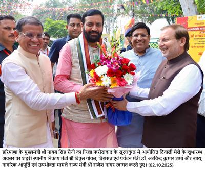 Speaking on the occasion, he said that this year’s Diwali Mela to be held in Surajkund is themed ‘Aatmanirbhar Bharat’ – ‘Swadeshi Mela’ and ‘We Unite Families'. Drawing parallels with India’s freedom movement, Sh. Nayab Singh Saini said that just as the Swadeshi movement strengthened our struggle for independence, it will also empower India’s journey toward prosperity. He urged people to buy Made-in-India products that carry the hard work of Indian youth. History tells us that when India was known as the Golden Bird, Swadeshi played a major role in our prosperity, he added.
