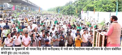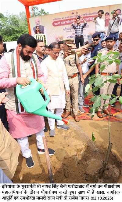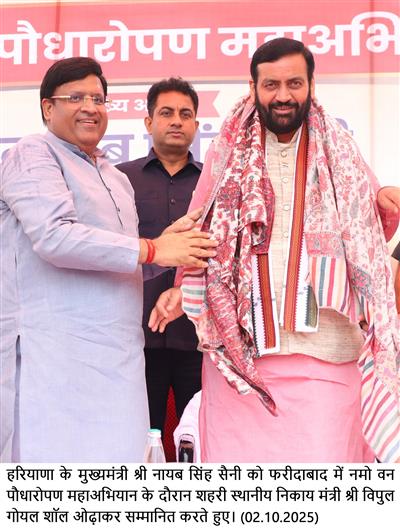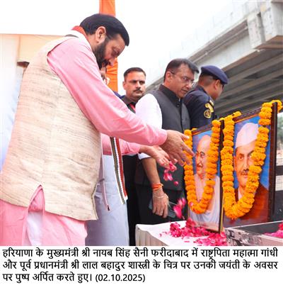 Chandigarh, October 2- Haryana Chief Minister, Sh. Nayab Singh Saini said that development and environmental protection are two sides of the same coin—one cannot exist without the other. The mega plantation drive organized on Thursday in Faridabad is another decisive step towards achieving this balanced development, he said. Extending his greetings to people on the occasion of Dussehra, the Chief Minister paid floral tributes to Mahatma Gandhi and former Prime Minister, Sh. Lal Bahadur Shastri on their birth anniversaries.