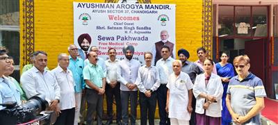 ये कहना था राज्यसभा सांसद सतनाम सिंह संधू का, जो आज आयुष्मान आरोग्य मंदिर (एएएम), सेक्टर 37 में सेवा पखवाड़ा के तहत आयोजित निशुल्क चिकित्सा शिविर, योग कार्यशाला, स्वच्छता अभियान व पौधारोपण अभियान में भाग लेने पहुंचे थे। यहाँ उनका स्वागत चण्डीगढ़ के आयुष निदेशक एवं स्पेशल सेक्रेटरी, हेल्थ अखिल कुमार, दानिक्स, संयुक्त निदेशक डॉ. एनएस भारद्वाज एवं असिस्टेंट डायरेक्टर, होम्योपैथी डॉ. मंजूश्री, एएएम, सेक्टर 37 के प्रभारी तथा स्टेट लाइसेंसिंग अथॉरिटी व वरिष्ठ आयुर्वेदिक चिकित्सक डॉ. राजीव कपिला, ड्रग इंस्पेक्टर व वरिष्ठ आयुर्वेदिक चिकित्सक डॉ. आरती वर्मा ने किया।