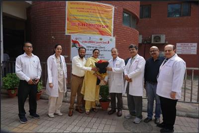 CHANDIGARH,03-10-2025-Department of Transfusion Medicine, PGIMER, Chandigarh and Thalassaemic Charitable Trust jointly organized 320th Blood Donation Camp of the Trust to celebrate Swasth Nari Sashakt Parivar Abhiyaan and National Voluntary Blood Donation Day on 1st October 2025 in PGIMER, Chandigarh. The Camp was dedicated to thalassaemia patients and other serious patients requiring blood support. Thalassaemic Charitable Trust made elaborate arrangements for the blood donors and set up a desk dedicated to thalassaemia awareness.