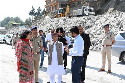 SHIMLA, 03.10.25-Governor Shiv Pratap Shukla today visited Manali to assess the damage caused by heavy rains and floods during this monsoon. He inspected the stretch of the national highway between Kullu and Manali that was severely damaged due to floods and expressed concern over the large-scale destruction at several locations.