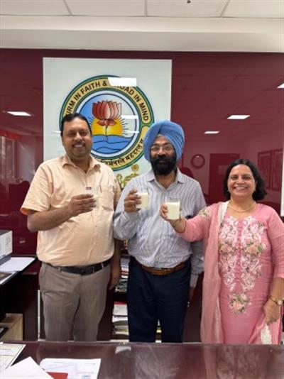 During the session, participants were introduced to various strategies such as *microbial degradation, phytoremediation, mycoremediation, bioaugmentation, and biostimulation*. Real-life examples were shared, including the use of hydrocarbon-degrading bacteria for oil spill cleanup, the role of plants in extracting heavy metals from soil, and the use of fungi for breaking down persistent organic pollutants. The lecture also highlighted the advantages of bioremediation—such as cost-effectiveness, environmental compatibility, and scalability—while not overlooking its limitations and challenges. The audience expressed keen interest in understanding how bioremediation technologies can be applied in local contexts, particularly in addressing issues of water contamination and soil pollution. As Dr Swaranjit Singh brings tradition and taste together, promoting the refreshing health benefits of buttermilk – a perfect blend of wellness and flavour, a session of buttermilk was also organised for the faculty members and the speaker as well. The session concluded with closing remarks by Dr Indu Mehta, Head of Department, who appreciated the resource person for sharing their expertise and encouraged students to explore research opportunities in the field of environmental biotechnology.