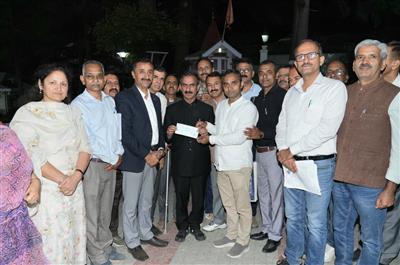 SHIMLA, 04.10.25-PTA Regular Teacher's Union, Himachal Pradesh today presented a cheque of Rs.3.79 lakh to Chief Minister Thakur Sukhvinder Singh Sukhu as a contribution towards the Chief Minister’s Relief Fund.