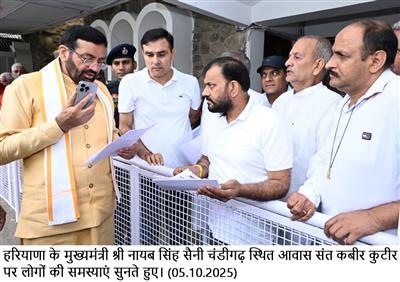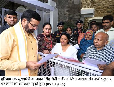 Haryana Chief Minister, Sh. Nayab Singh Saini redressing the grievances of the people at his residence Sant Kabir Kutir in Chandigarh on on October 5, 2025