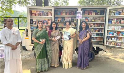 Participants enthusiastically searched for books related to Mahatma Gandhi’s life, works, and ideologies, making the competition both intellectually stimulating and interactive. The winners were felicitated with certificates and prizes in recognition of their commendable enthusiasm and performance. Enhancing the celebration’s scope, the college also collaborated with the Ramakrishna Mission Mobile Library Van- Vivek Vahini, which was stationed on campus. The Mobile Book Van offered the students access to a rich collection of inspirational literature, including the writings of Swami Vivekananda, Upanishads, Bhagavad Gita, meditation manuals, and books on personality development. This initiative beautifully complemented the Gandhi Jayanti celebration by enriching students’ understanding of moral, spiritual, and intellectual values.