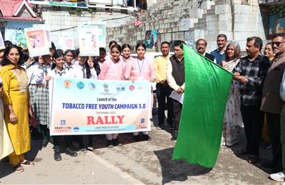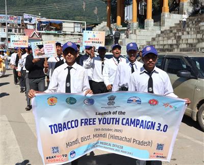 मंडी, 9 अक्तूबर। तंबाकू मुक्त युवा अभियान 3.0 का शुभारंभ आज मंडी जिला में उत्साहपूर्वक किया गया। सेरी मंच से स्कूली बच्चों द्वारा निकाली गई जागरूकता रैली को अतिरिक्त जिला दंडाधिकारी डॉ. मदन कुमार ने हरी झंडी दिखाकर रवाना किया। रैली से पहले बच्चों को जीवन में कभी भी किसी भी प्रकार के तंबाकू उत्पाद का सेवन न करने, अपने परिवार, मित्रों और परिचितों को भी तंबाकू का सेवन न करने के लिए प्रेरित करने तथा तंबाकू से होने वाले दुष्प्रभावों से समाज और पर्यावरण की रक्षा में योगदान देने की शपथ दिलाई गई।