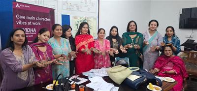 चण्डीगढ़, 10.10.25 : चण्डीगढ़ पॉवर डिस्ट्रीब्यूशन लिमिटेड (सीपीडीएल) की महिला अधिकारियों एवं कर्मचारियों ने सैक्टर 17 में करवाचौथ के अवसर पर सामूहिक मेहंदी लगवाई।