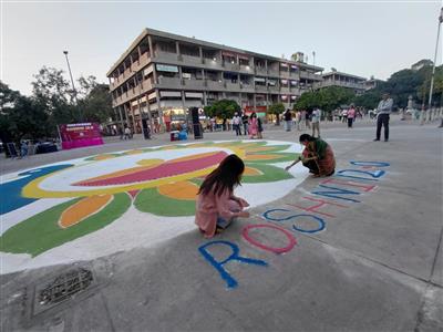 चण्डीगढ़, 17.10.25- : युवा-नेतृत्व वाले गैर-लाभकारी संगठन रोटरैक्ट क्लब, चण्डीगढ़ हिमालयन द्वारा वार्षिक दीपावली उत्सव रोशनी-12.0 का आयोजन किया, जिसका सबसे बड़ा आकर्षण सेक्टर 17 प्लाज़ा में बनाई गई ट्राइसिटी की सबसे बड़ी रंगोली का रहा, जो एकता, सृजनात्मकता और युवाओं के सामूहिक प्रयासों का प्रतीक है।