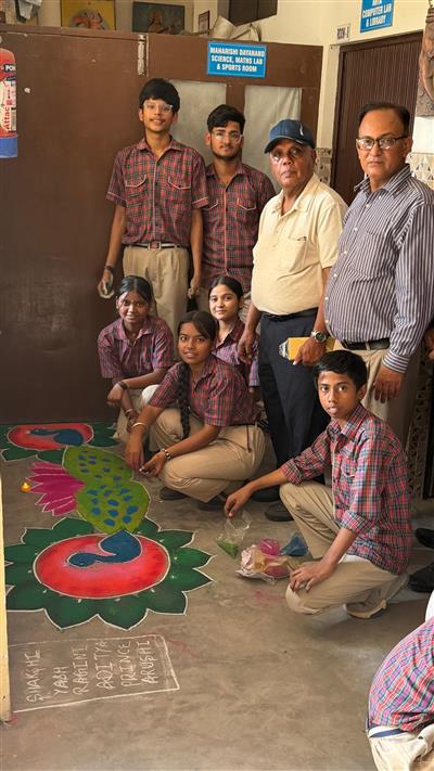 चण्डीगढ़18.10.25- : महर्षि दयानंद पब्लिक स्कूल, एमडीएवी भवन, दरिया के विद्यार्थियों के लिए दिवाली पर्व कुछ विशेष था। विद्यालय परिसर में रंगोली और दीया बनाओ प्रतियोगिता आयोजित की गई। इस दीवाली पर्व का विशेष प्रबंध अमेरिका के शिकागो से पधारे एनआरआई सुदर्शन गर्ग ने किया। उन्होंने मेधावी विद्यार्थियों और सभी टीचर्स को नकदी देकर पुरस्कृत किया। एनआरआई सुदर्शन गर्ग ने स्कूल के सभी कक्षाओं के विद्यार्थियों स्टाफ मेंबर्स को उपहार दिये। कार्यक्रम के दौरान उन्होंने अपने संबोधन में विद्यार्थियों को पढ़ाई के साथ-साथ अन्य करिकुलर एक्टिविटीज में भी हिस्सा लेने के लिए प्रेरित किया। उन्होंने कहा कि उनका प्रयास है कि हर बच्चे को कार्यक्रम में भाग लेकर छुपी ही प्रतिभा का निखार करना चाहिए। उन्होंने सभी विद्यार्थियों को कार्यक्रमों का हिस्सा बनने के लिए कहा। उन्होंने सभी विद्यार्थियों और स्टाफ को दिवाली की हार्दिक शुभकामनाएं दीं।