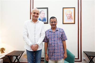 Chandigarh October 21-Industrialist and Punjab Chairman of the PHD Chamber of Commerce and Industry, Karan Gilhotra, met Aam Aadmi Party National Convenor and former Delhi Chief Minister Arvind Kejriwal in Delhi on the occasion of Diwali.