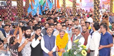 Earlier, he was given a rousing reception on reaching Barsar. Thousands had gathered to welcome the Chief Minster en-route Barsar.