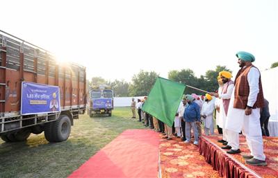 Amritsar, October 26:Fulfilling another promise made with the flood victims of the state, the Punjab Chief Minister Bhagwant Singh Mann on Sunday flagged off seven trucks to provide two lakh quintal wheat seeds free of cost to the farmers who have lost their crop in around five lakh acres of land during the recent floods.