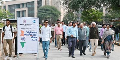 On this occasion, Prof. Pawan Kumar Sharma, Pro Vice-Chancellor highlighted that vigilance and integrity are not just administrative duties but moral principles that form the foundation of institutional honesty. He also explained his view through various examples from European countries where people are honest for their duties. Under the leadership of Vice-Chancellor Prof. Tankeshwar Kumar, a Vigilance Awareness Rally was also organized on the campus. The rally began from Academic Block I and proceeded through Academic Blocks III & IV.
