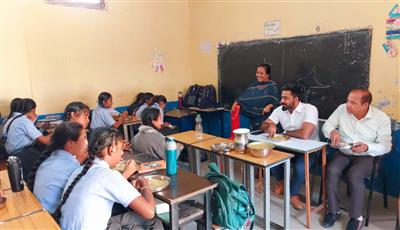 ऊना, 28 अक्तूबर। उपायुक्त ऊना जतिन लाल ने आज(मंगलवार) को राजकीय कन्या वरिष्ठ माध्यमिक विद्यालय ऊना का दौरा कर सरकार द्वारा संचालित मिड-डे मील योजना का निरीक्षण किया। इस अवसर पर उपायुक्त ने न केवल विद्यार्थियों को परोसे जा रहे मिड-डे मील की गुणवत्ता, स्वच्छता व्यवस्था तथा मात्रा की गहनता से जांच की, बल्कि छात्राओं के साथ बैठकर भोजन भी किया और स्वयं भोजन की गुणवत्ता व स्वाद का अनुभव लिया। निरीक्षण के दौरान उन्होंने रसोई की साफ-सफाई और भंडारण व्यवस्था पर संतोष व्यक्त किया तथा मिड-डे मील वर्करों के प्रयासों की सराहना भी की।