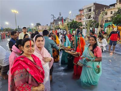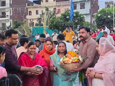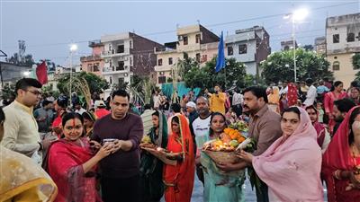 CHANDIGARH,28.10.25-Sh. Amit Kumar, IAS, Commissioner, Municipal Corporation Chandigarh during Chhat puja celebration at Indra Colony, Manimajra today early morning. Smt. Suman Sharma, area councilor of Ward No. 4 and others were also present during the occasion.