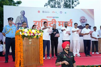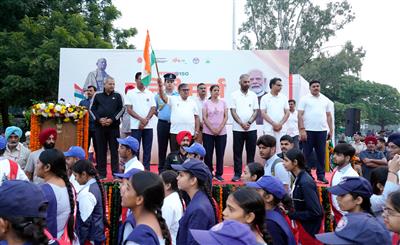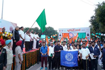 Chandigarh, 31st October ,2025-The Punjab Governor and Administrator, UT Chandigarh, Sh. Gulab Chand Kataria, led the ‘Sardar@150 Unity March’ held at Sukhna Lake to commemorate the 150th birth anniversary of India’s Iron Man, Sardar Vallabhbhai Patel. The event, organized by the Chandigarh Administration in collaboration with MY Bharat under the Ministry of Youth Affairs and Sports, Government of India, witnessed enthusiastic participation from around 800 youth and NSS volunteers.