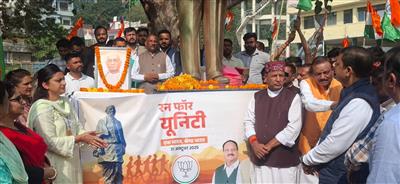 SIRMAUR, 31.10.25-डाॅ राजीव बिन्दल, प्रदेश अध्यक्ष भाजपा ने कहा कि सरदार वल्लभ भाई पटेल की जयंती पर भारतीय जनता पार्टी हिमाचल प्रदेश द्वारा सभी 17 संगठनात्मक जिलों में रन फाॅर यूनिटी के कार्यक्रम आयोजित किए गए व सभी स्थानों पर प्रमुख नेताओं ने रन फाॅर यूनिटी की दौड़ में भाग लिया और सम्बोधन दिया।