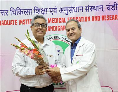 CHADIGARH-Dated: 31.10.2025-Prof. Vivek Lal,(Director) PGIMER Honoured 10 officers/officials on their superannuation today by giving speech & presenting mementos to them; Prof. R. K. Ratho, Dean (Academics); Prof. Sanjay Jain, Dean (Research); Prof. Ashok Kumar, Officiating Medical Superintendent; Prof. Paramjit Singh, Head, Deptt. of Radiodiagnosis; Prof. Surinder Rana, Prof. Incharge, Library; Dr. Rajiv Kumar, Chief Medical Officer, Staff Clinic; Mrs. Jaspal Kaur, Chief Nursing Officer; Sh. Pawan Sharma, Sanitation Officer were also present on the occasion.