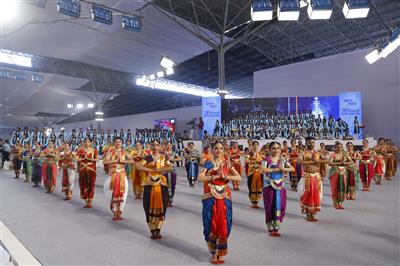 Prior to the Message to Mankind, Satguru Mata Sudiksha Ji Maharaj and Nirankari Rajpita Ji, arrived at the venue and were garlanded and presented bouquet by Rev. Raj Kumari Ji, President Sant Nirankari Mandal and other executive committee members. The Holy Couple was welcomed by members of the executive committee and others. On the path of procession, thousands of devotees greeted their loving Satguru Mataji and Nirankari Rajpita Ji. The attraction of the procession was a queue of devotees chanting hymns with devotion expressing their love and reverence. The dancing and classical singing troupe exemplified a beautiful presentation with play of various musical instruments from Nirankari Institute of Music & Arts (NIMA). The first day session of the Satsang on inaugural day commenced thereafter.