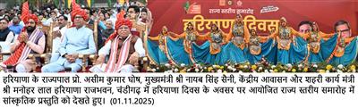 Among those present on the occasion were Speaker of the Haryana Legislative Assembly Sh. Harvinder Singh Kalyan, Cooperation Minister Sh. Arvind Sharma, Agriculture and Farmers' Welfare Minister Sh. Shyam Singh Rana, Health and Family Welfare Minister Arti Singh Rao, Chief Secretary Sh. Anurag Rastogi, Additional Chief Secretary (Home) Dr. Sumita Misra, Additional Chief Secretary (SEWA) Smt. G. Anupama, Director General of Police Sh. O. P. Singh, Additional Chief Secretary (Town & Country Planning and Urban Estates) Sh. Apoorva Kumar Singh, Principal Secretary to Chief Minister Sh. Arun Gupta, Additional Chief Secretary (Public Works Department) Sh. Anurag Aggarwal, Additional Chief Secretary (Cooperation) Sh. Vijayendra Kumar, Additional Principal Secretary to Chief Minister Dr. Saket Kumar, Director General of Information, Public Relations, Languages & Culture Department Sh. K. Makarand Pandurang, Secretary to Governor Sh. Dusmanta Kumar Behera, Deputy Principal Secretary to Chief Minister Sh. Yash Pal, along with several senior officers, employees, and a large gathering of people.