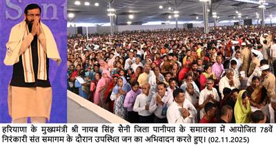 Chandigarh, November 2: Haryana Chief Minister, Sh. Nayab Singh Saini said that the Nirankari Mission has shown the path of unity to mankind by rising above the differences of caste, religion, language, and region.