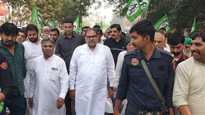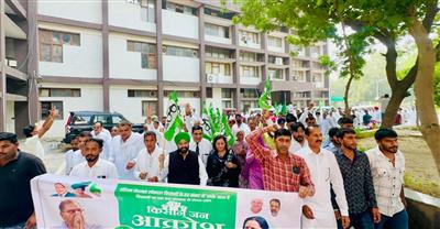 इनेलो के संगठन सचिव उमेद लोहान ने हिसार में प्रदर्शन की अगुवाई की और कहा कि बीजेपी सरकार में किसान आज खून के आंसू रो रहा है।