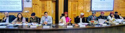 चंबा, नवंबर 3-राष्ट्रीय अनुसूचित जनजाति आयोग की सदस्य डॉ. आशा लकड़ा की अध्यक्षता में जिले के अनुसूचित जनजाति वर्ग से संबंधित लोगों के संवैधानिक सुरक्षा उपायों, कल्याण एवं विकास योजनाओं के कार्यान्वयन की समीक्षा को लेकर आज बचत भवन में बैठक का आयोजन किया गया।