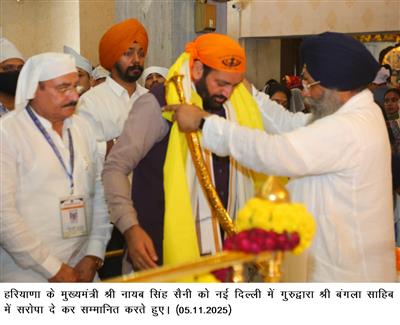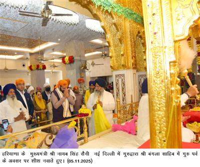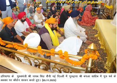 Extending greetings on the occasion of Guru Parv, Sh. Nayab Singh Saini said that Baba Nanak Ji gave us three mantras, Kirat Karni (work with honesty), Vand Chhakna (share with others), and Naam Japna (remember God). He urged everyone to adopt these three principles in life and move forward by following them.