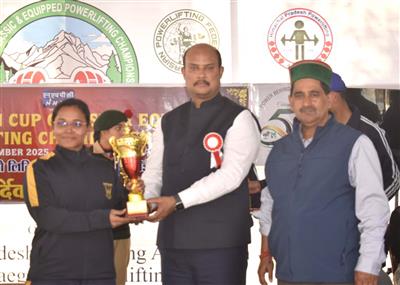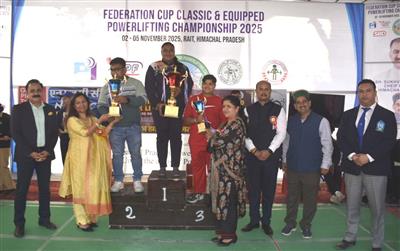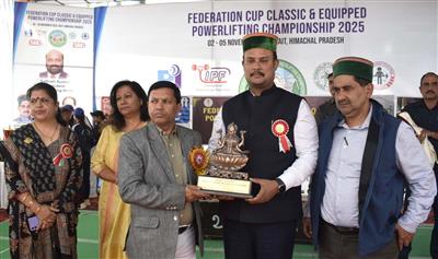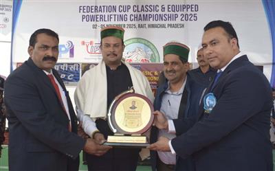 शाहपुर, 5 नवंबर-राजकीय वरिष्ठ माध्यमिक विद्यालय रैत में आयोजित राष्ट्रीय फैडरेशन कप क्लासिक एवं इक्विप्ड पावरलिफ्टिंग चैंपियनशिप–2025 का आज समापन हुआ। इस अवसर पर हिमाचल प्रदेश के आयुष, युवा सेवाएं एवं खेल, कानून एवं विधि मंत्री यादविन्द्र गोमा ने बतौर मुख्यातिथि शिरकत की।