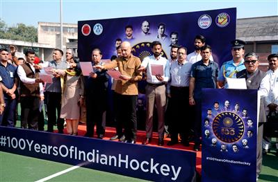 Chandigarh, November 7: To commemorate the completion of 100 glorious years of Indian Hockey, Hockey Chandigarh, in collaboration with UT Chandigarh Sports Department, organised a grand celebration of the Indian Hockey Centenary Year at the Hockey Stadium, Sector 42, Chandigarh.