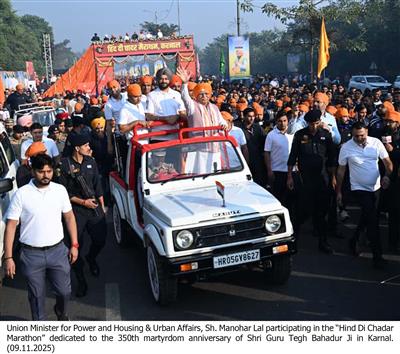He said on the occasion of the 350th martyrdom anniversary of the ninth Sikh Guru, processions and events are being organized across the country, including in Karnal. Thousands of youth have gathered here today to pay homage to Guru Tegh Bahadur Ji. The marathon, he said, is not merely a run but a spirited expression of reverence, enthusiasm, and emotion towards the great freedom fighters who sacrificed their lives for the nation.
