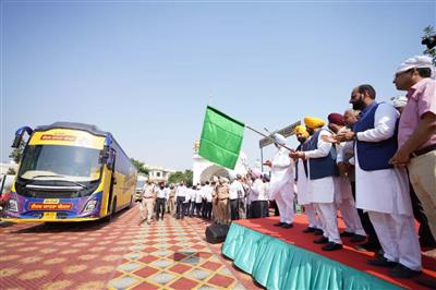Dhuri (Sangrur), November 9-Punjab Chief Minister Bhagwant Singh Mann on Sunday flagged off the first batch of buses carrying devotees for paying obeisance at holy city of Amritsar under the Mukh Mantri Tirath Yatra Scheme.