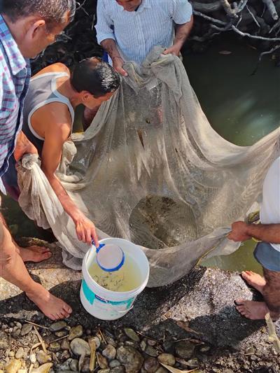 राहेरा नाले में फंसी लगभग 50 हजार मछलियों के बच्चों को मत्स्य विभाग ने बचाया