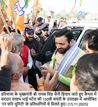 Chandigarh, November 15 - Haryana Chief Minister Sh. Nayab Singh Saini, on Saturday morning, stopped his convoy during the Run for Unity, organized from NIILM University to Kaithal, to encourage the participants.