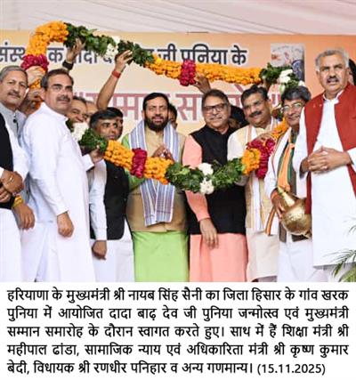 Referring to the program organized yesterday at Badhkhalsa in Sonipat to mark the martyrdom day of Dada Kushal Singh Dahiya, the Chief Minister said that Dada Kushal Singh Dahiya, along with Sri Guru Tegh Bahadur Ji, made the supreme sacrifice for the protection of religion. He added that the State Government is committed to disseminating the history, teachings, and sacrifices of the Gurus and Saints to the public. The Chief Minister informed that the 350th martyrdom year of Sri Guru Tegh Bahadur Ji is being celebrated in a grand manner by the state government, and that Prime Minister Sh Narendra Modi will visit Haryana on November 25 to attend the program organized in this regard.